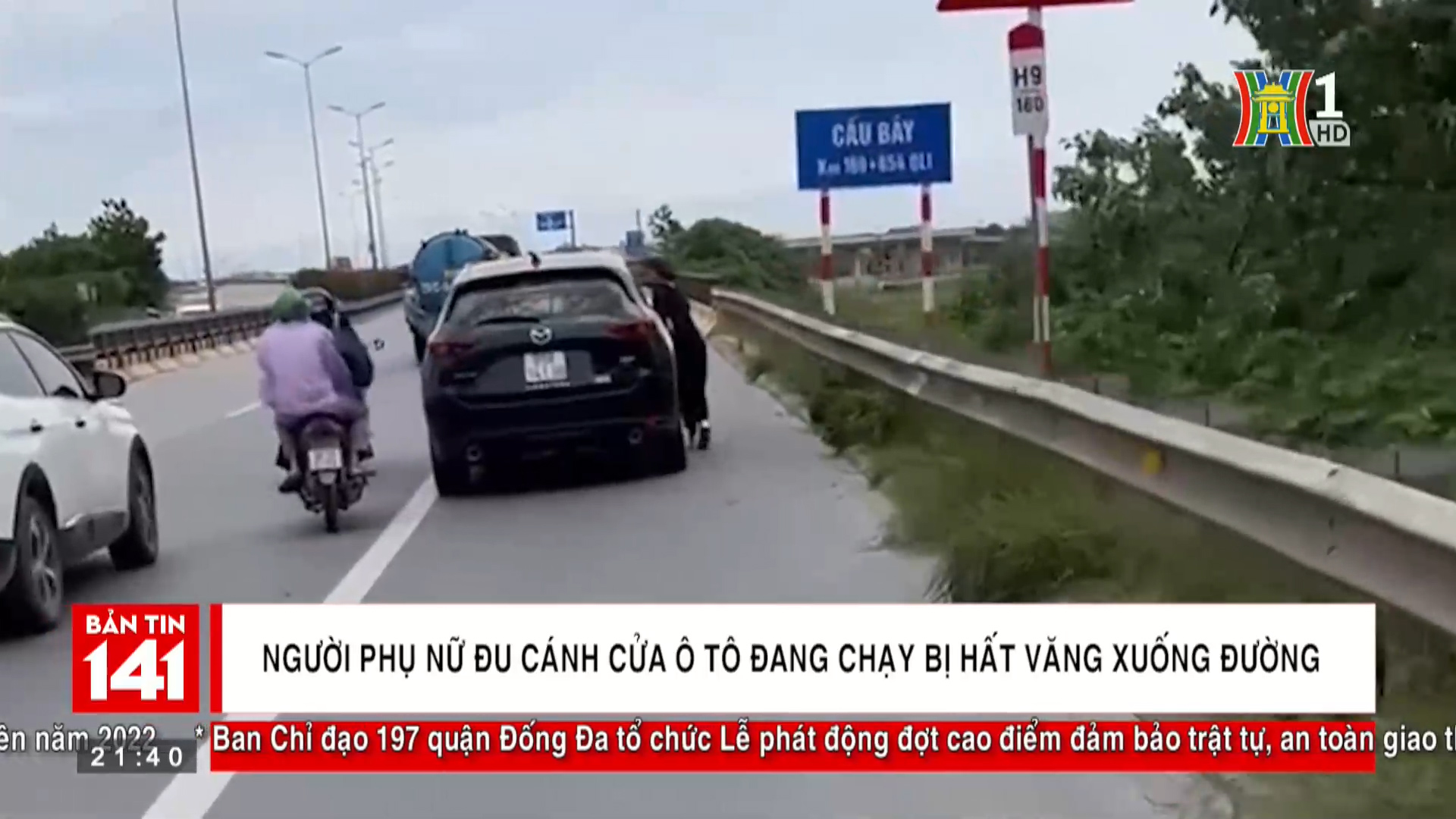 Người phụ nữ đu cánh cửa ô tô đang chạy bị hất văng xuống đường.mp4